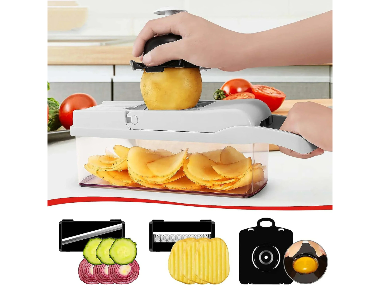 12-in-1 multifunctional vegetable cutter — inspired by Fullstar chopper models. Stainless steel blades for slicing, dicing, shredding, and spiralizing. Compact, eco-friendly, and perfect for fast healthy cooking.
